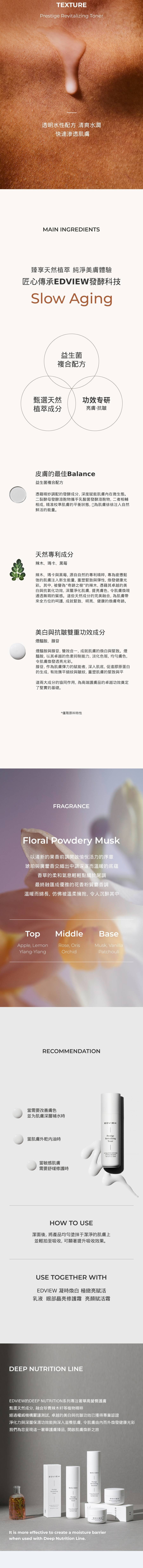 質地清爽易吸收,為肌膚補充第一道水分,幫助後續保養更有效。溫和配方適合日常使用,讓肌膚恢復柔軟與光澤。